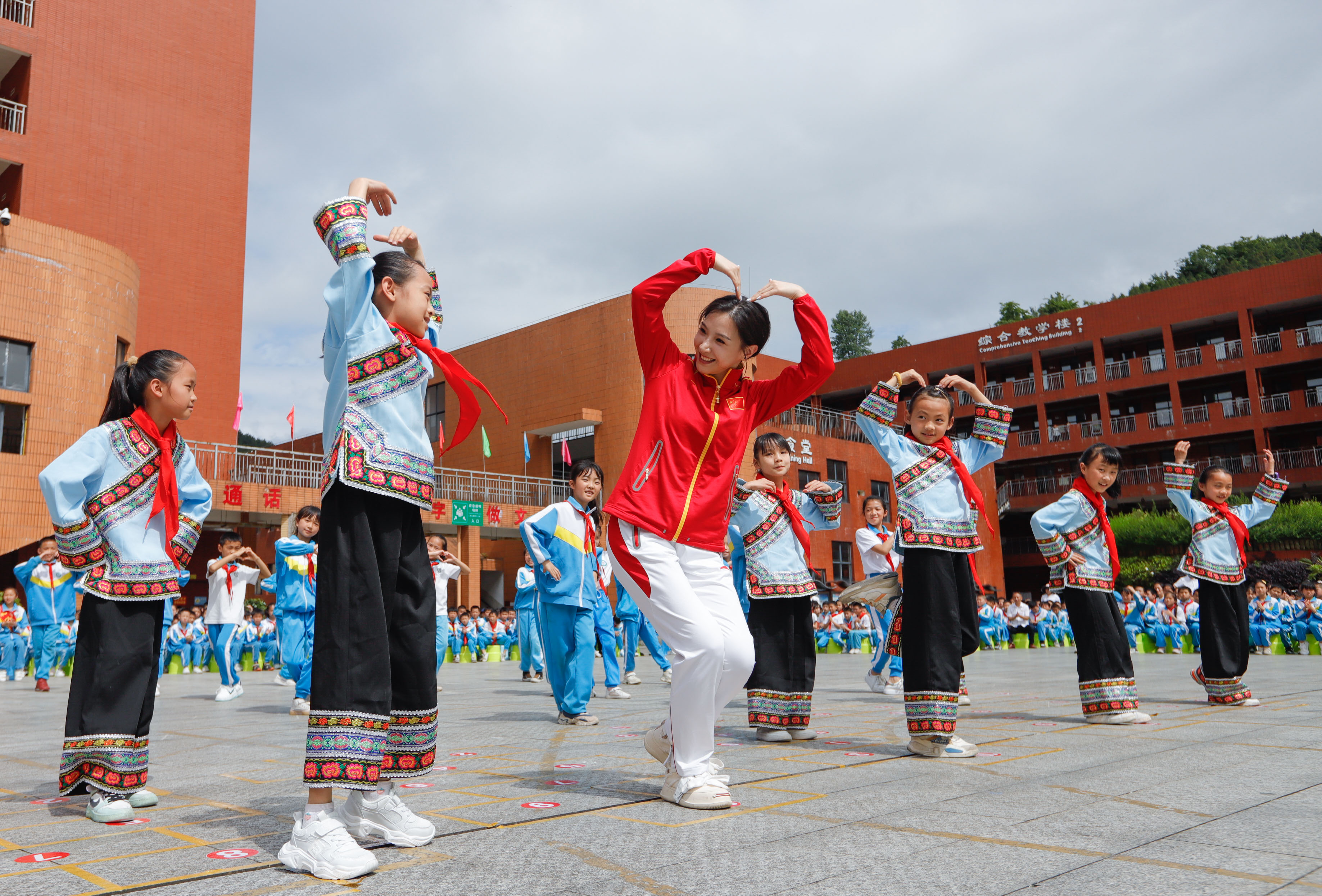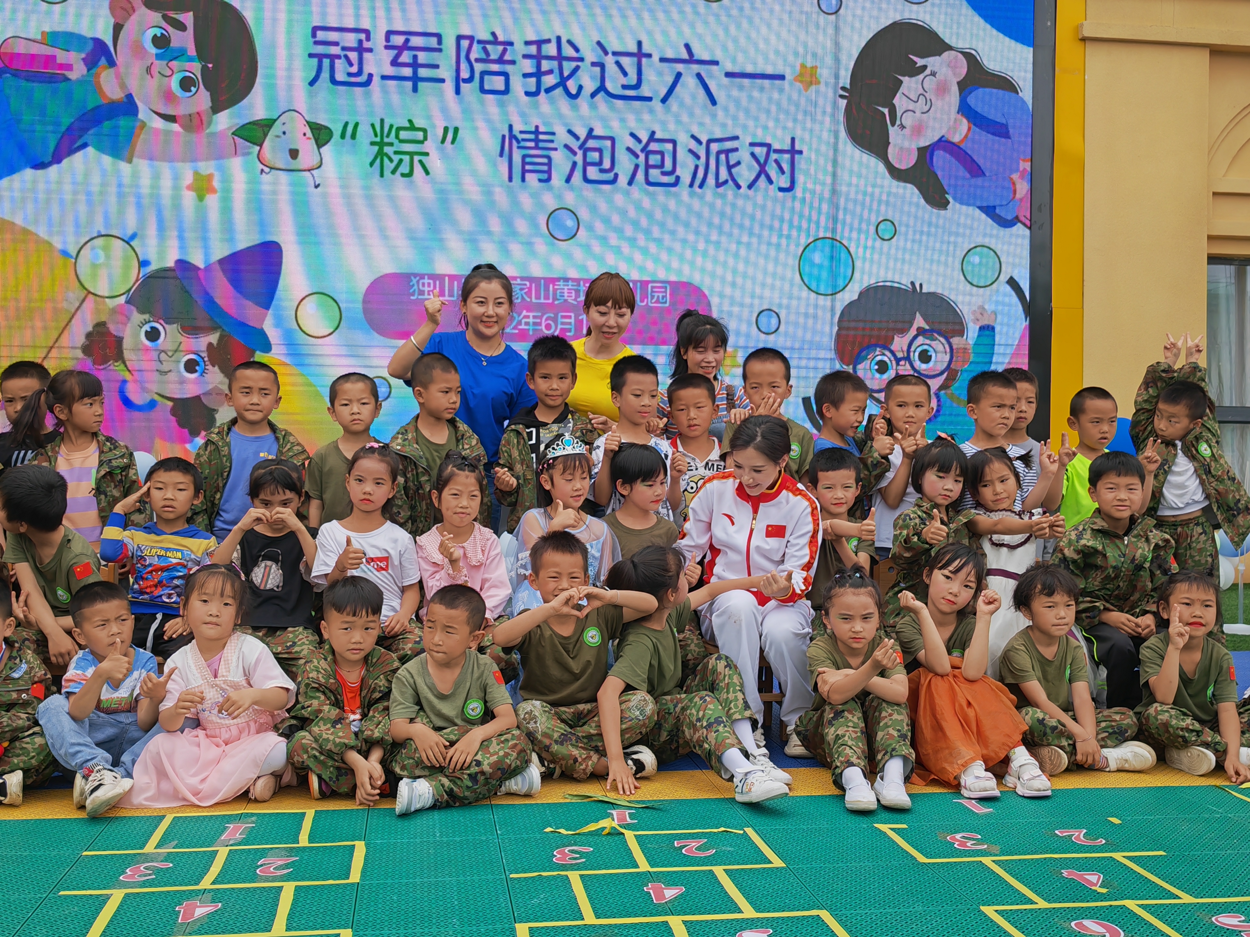 5月31日至6月1日,在贵州独山县易地扶贫搬迁安置点鄢家山社区,两场名为“冠军陪我过‘六一’”的公益活动,走进了当地的独山县第三小学和黄埔幼儿园,两千多名乡村儿童与蹦床世界冠军蔡琪子欢聚一堂,共庆“六一”国际儿童节。