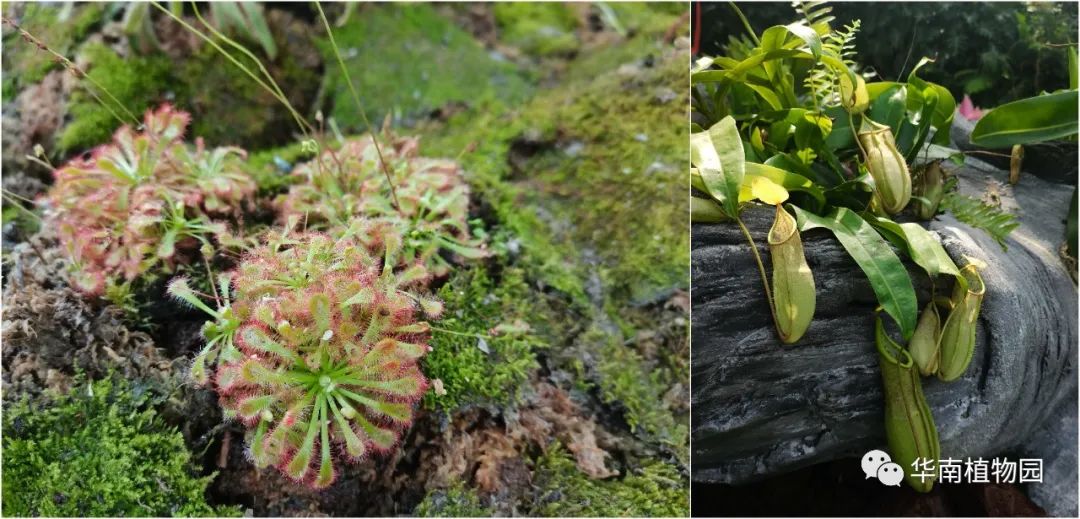 茅膏菜(左)、猪笼草(右)。通讯员供图