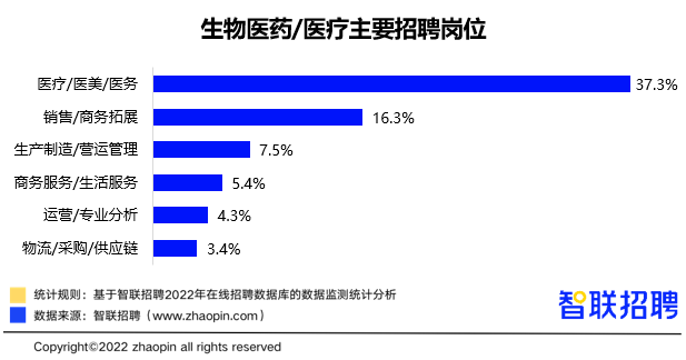 北京生物医药/医疗职位占比达11%位列第一 成都进入三甲