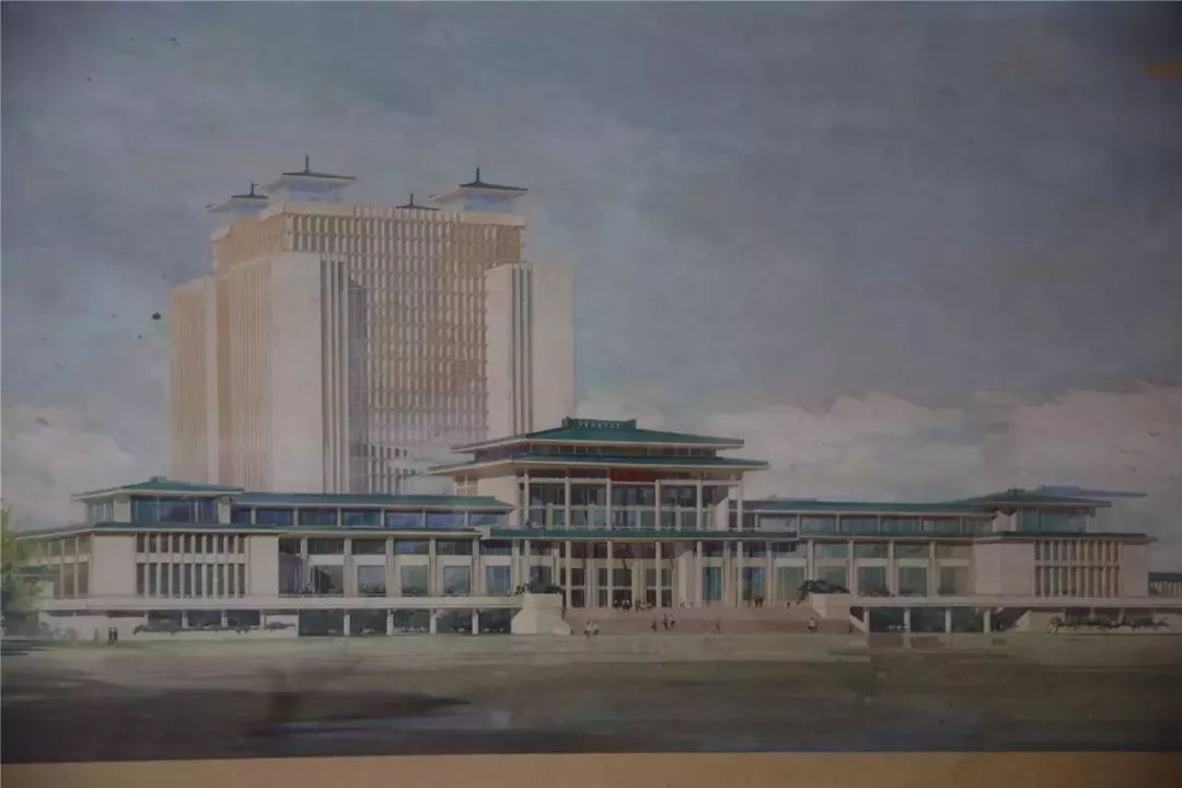 吴良镛等人当年绘制的北京图书馆方案效果图
