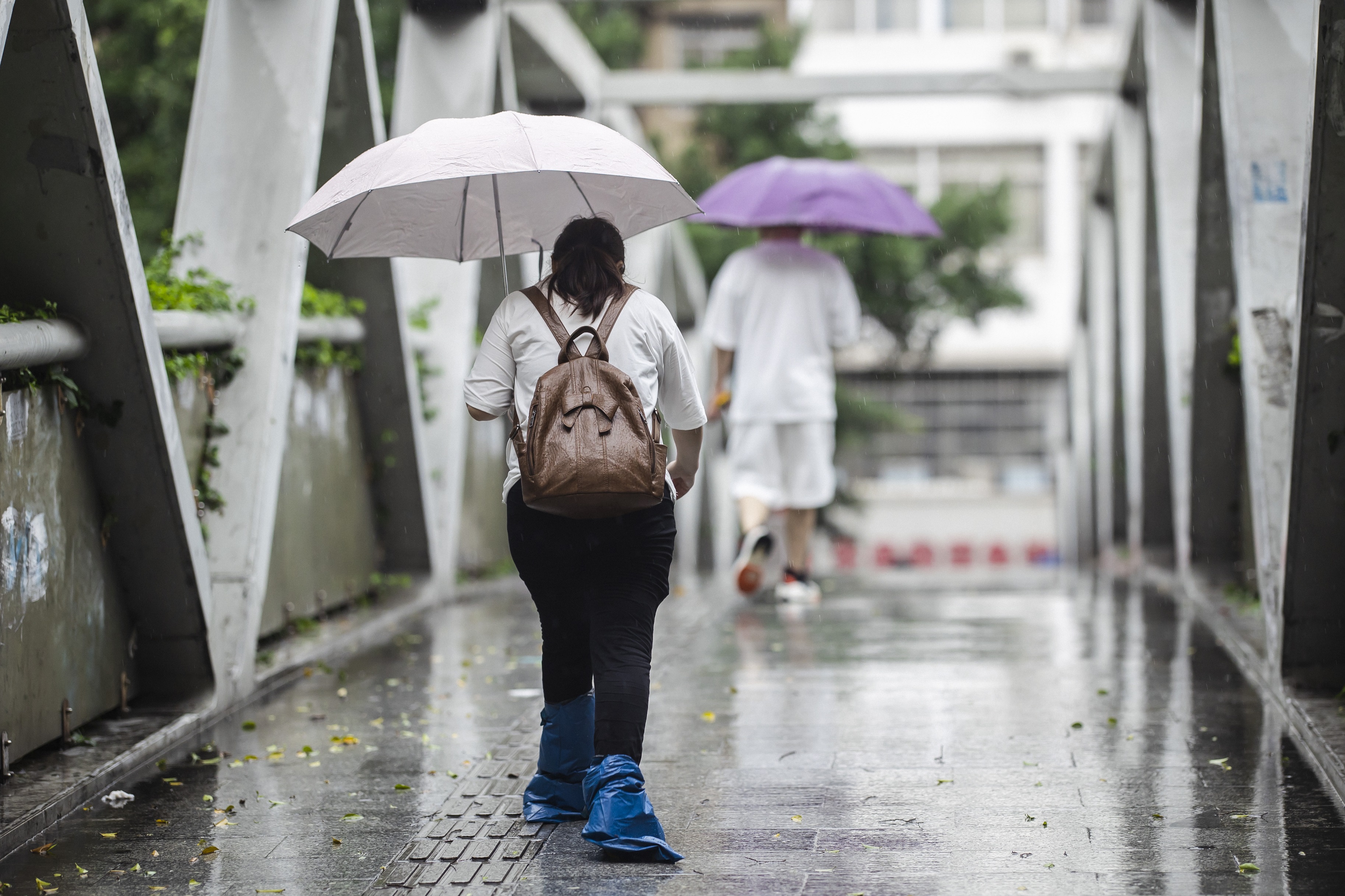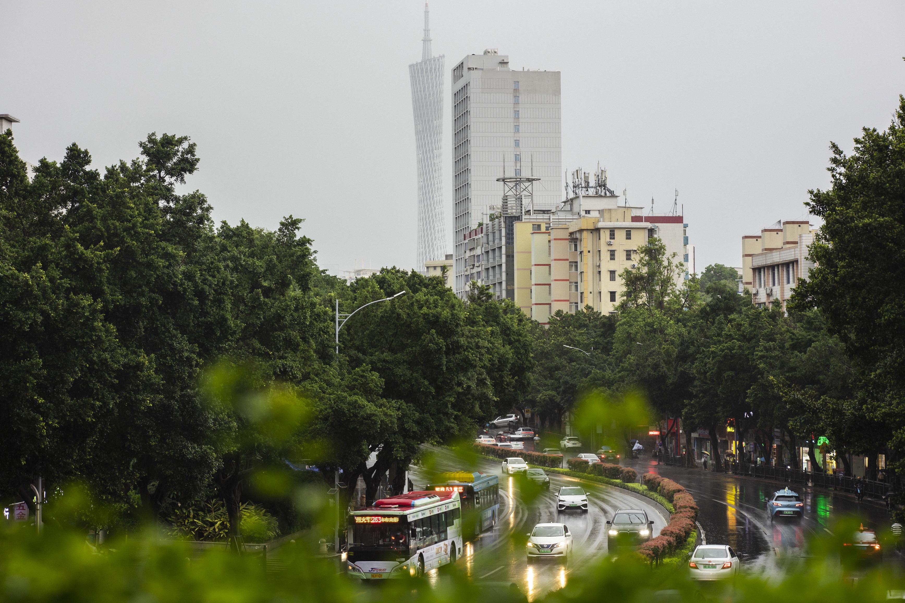 旁边的猎德大桥和广州塔也被雨雾遮挡
