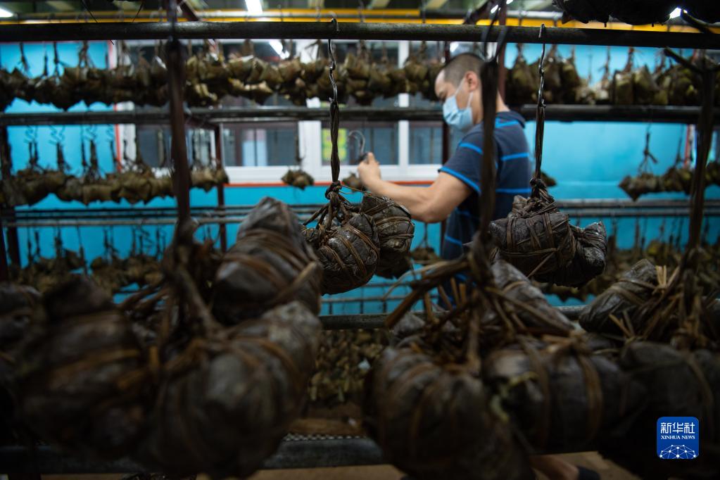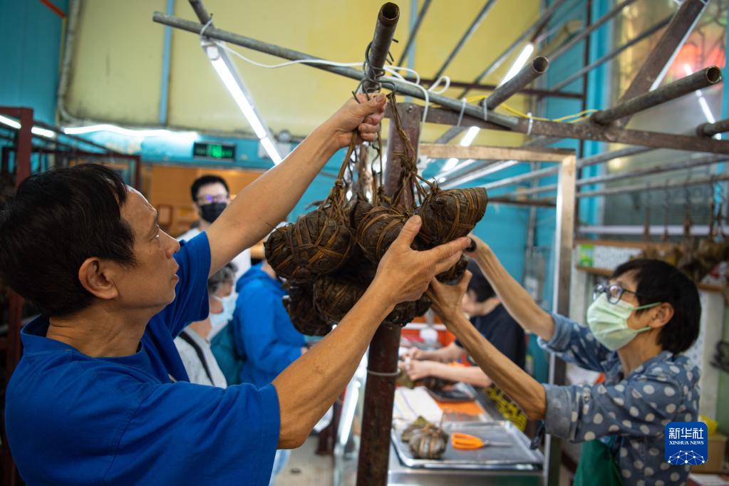 5月31日,傳統茶樓蘭香閣的員工在整理粽子。新華社記者 張金加 攝