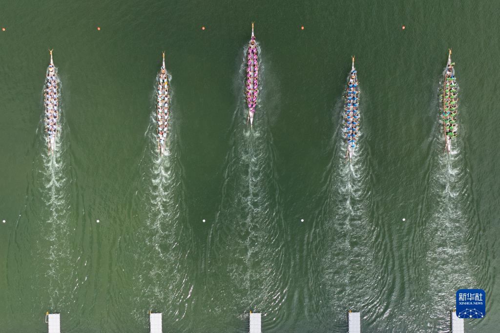 當天的南灣湖畔,彩旗飄揚,鼓樂喧天,多支龍舟勁旅乘風破浪、奮力求先,競逐各項錦標殊榮。廣大市民和旅客也在防疫要求下,親臨觀賞精彩賽事,共慶端陽。