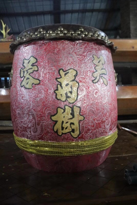 龙船厂只管做船,为了配齐船上的罗伞、船桨、旗帜、锣、鼓等不同元素,龙船会成员们跑了很多地方,“鼓是在佛山南海定做的;罗伞、三角旗是在广州市内越秀区专门做戏服的店做的;船桨是在海中村定做的。”回忆起筹备龙船的过程,芙蓉菊树龙船会副会长杜永权说。