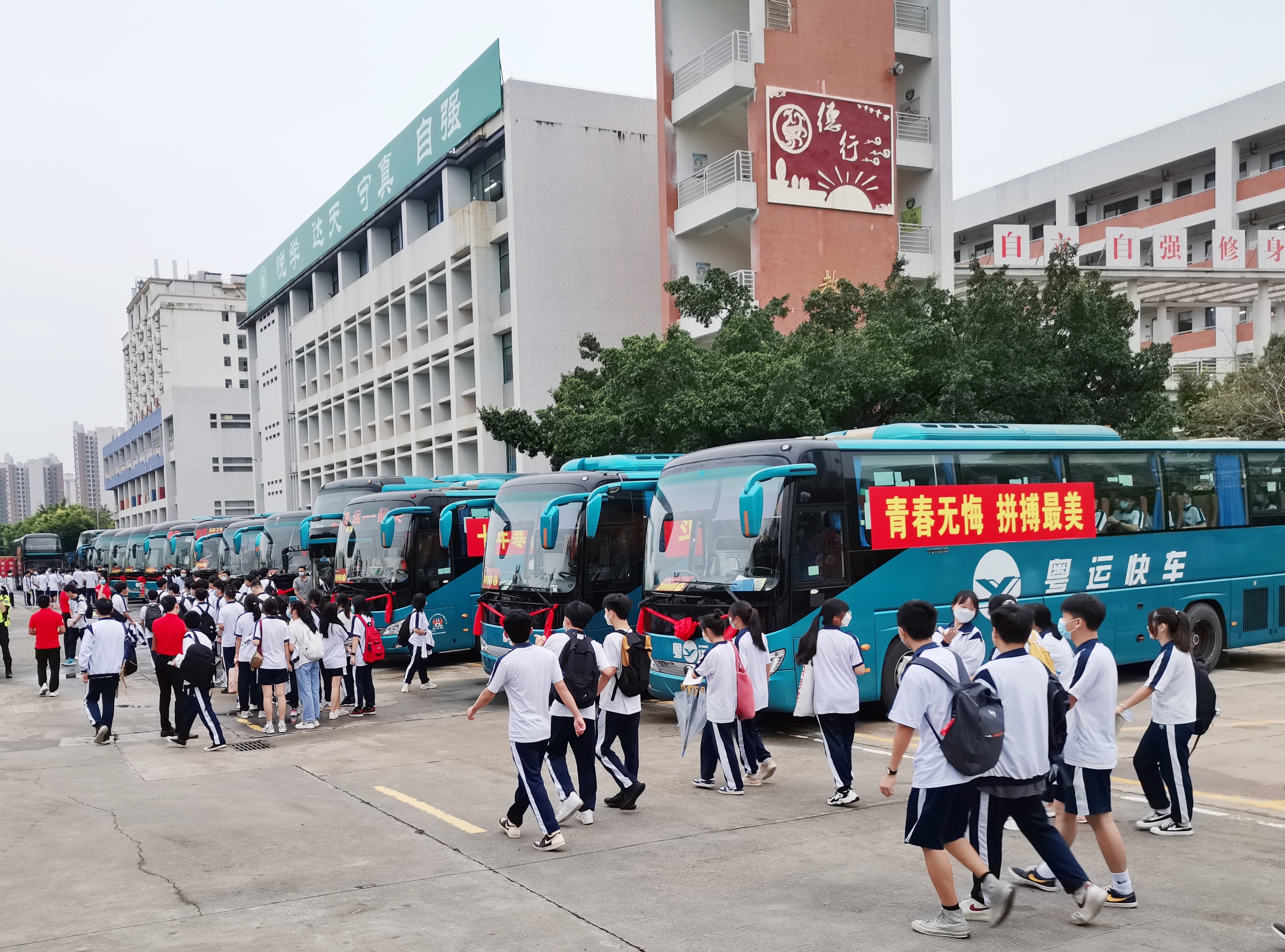 广东省汽运集团为增城郑中钧中学学子提供爱心送考服务。
