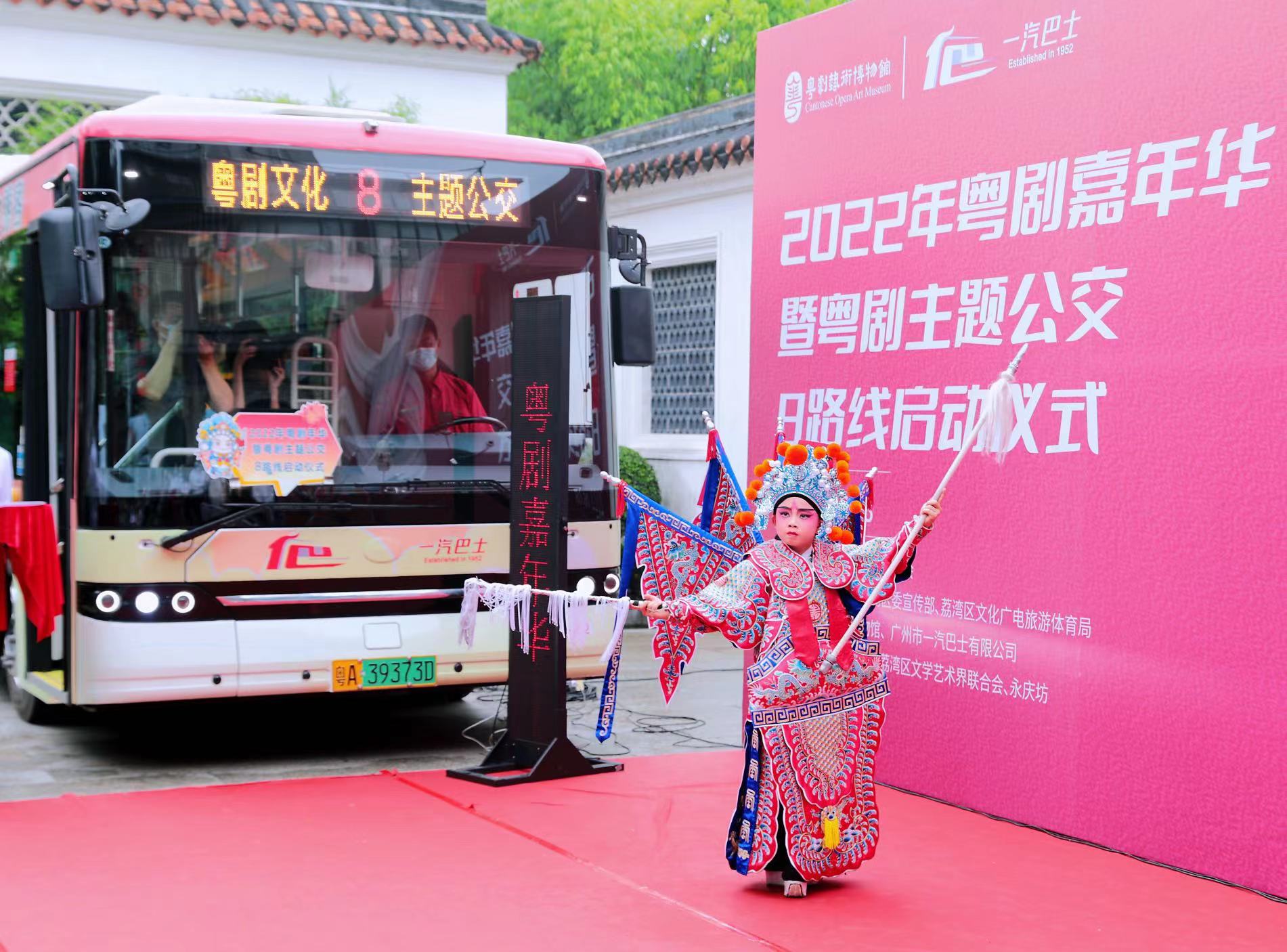 6月8日上午,2022年粤剧嘉年华暨粤剧主题公交8路线启动仪式在粤剧艺术博物馆西园举行。现场驶入了一辆以粤剧主题打造的一汽巴士8路线,成为流动粤剧展示舞台。
