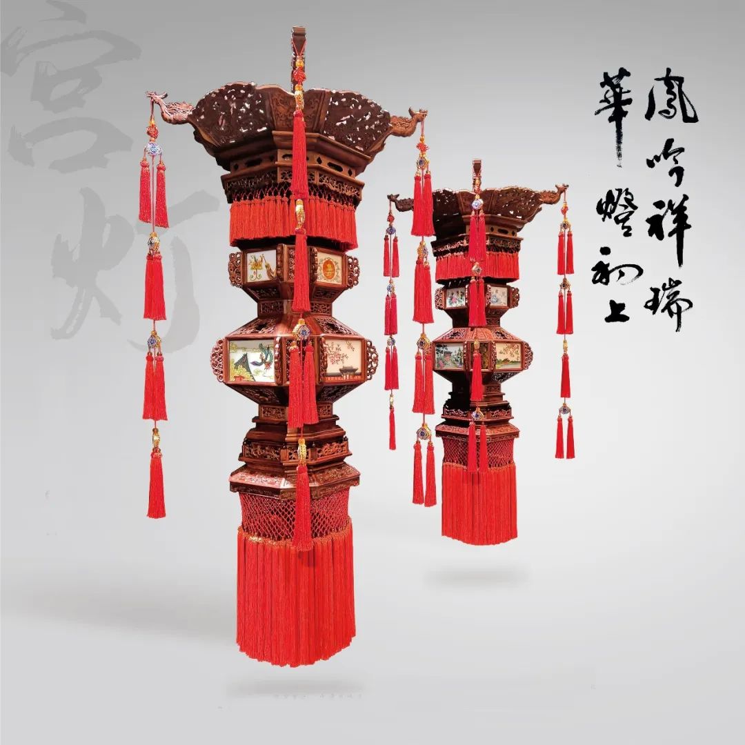 红木宫灯为集绘画、木雕和玻璃工艺为一体的传统工艺品,起源于明朝,古时为宫廷专用的照明灯饰,流传至今已有六百余年。广州,宫灯发源地之一,广式宫灯以贡品形式为明清宫廷使用。清代为宫灯发展鼎盛时期,宫灯出口至世界各地,为中外文化交流所用,被外国人美誉为“中国灯”。