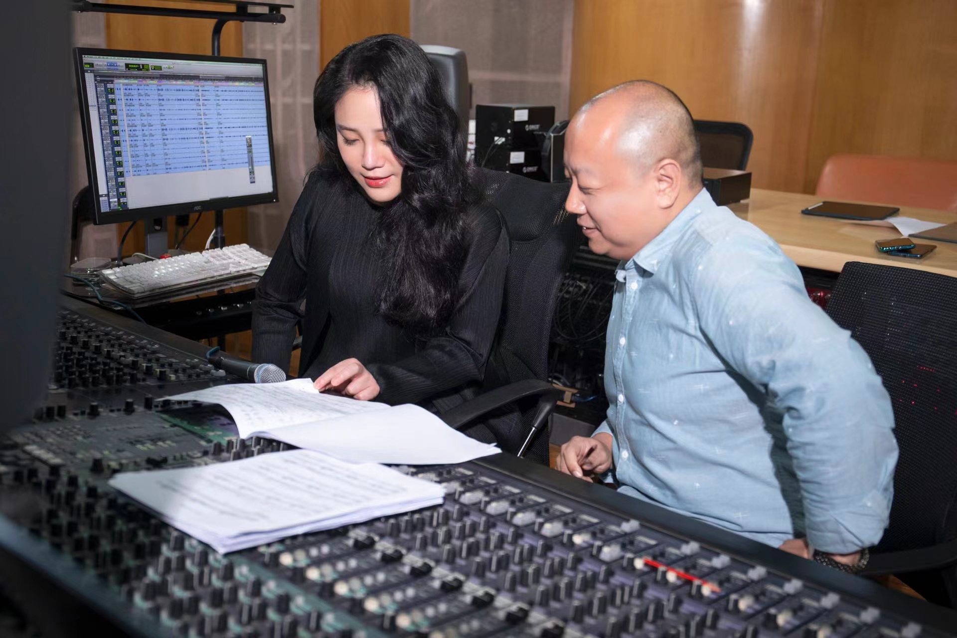 左章与杨震讨论录音版本的选择及修改