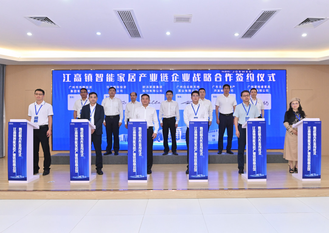 6月9日,广州市白云区江高镇智能家居产业链联席会议暨战略合作签约仪式,在欧派家居集团股份有限公司(以下简称“欧派集团”)举行。据了解,江高镇将依托龙头企业欧派集团引领,在高端定制智造产业园内,加速集聚家具制造行业产业链上下游企业,实现研发设计、智能生产、智慧物流、多渠道销售、定制体验等全产业链条贯通及升级。