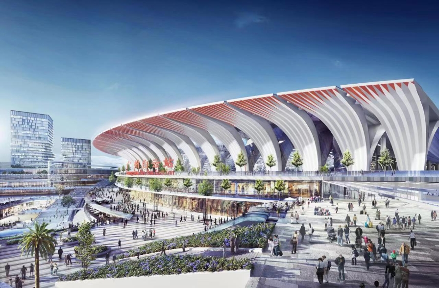 广州白云站是全国“十三五”铁路规划中的重要项目,是粤港澳大湾区的重点工程,是按照“轨道上的大湾区”建设理念打造的一座世界级现代综合交通枢纽特大型火车站。项目建成后,将承接广州站和广州东站的全部普速客车,预计2023年年底竣工,届时将为国家铁路发展、建设“轨道上的大湾区”注入新的有效动力。