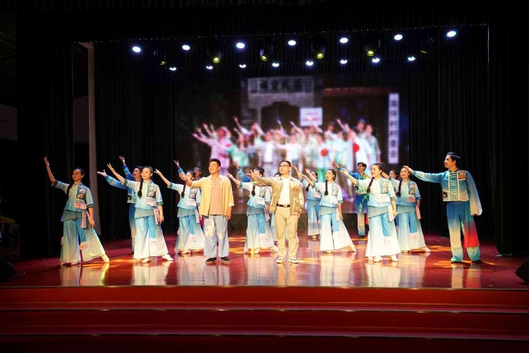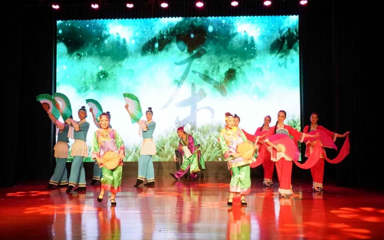当晚活动现场,演出节目可谓精彩纷呈,涵盖采茶小戏、歌舞、独唱、表演唱等多种舞台艺术形式。开场舞《茶韵飘香》的表演载歌载舞,形态健美,刚健敏捷,活泼优美、轻松奔放,富有乡土气息,高矮步、云手、摸步、扇子花、独舞、对舞是其特有的表演形式。