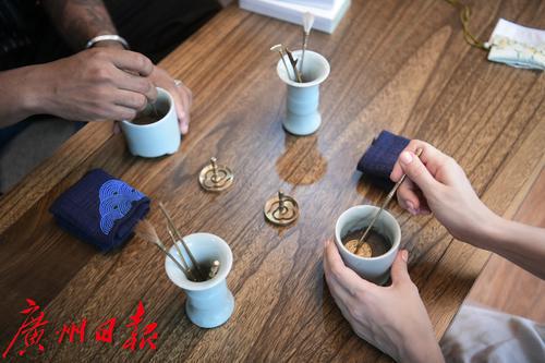 近距离观赏宋代点茶、制作香囊、闻香料、品香食……6月12日,30多位中外友人“踏香而行”,走进广州花都七溪地,体验了一场别开生面的文化之旅。这是由广州市人民政府外事办公室主办的2022年广州国际文化交流系列首期活动。
