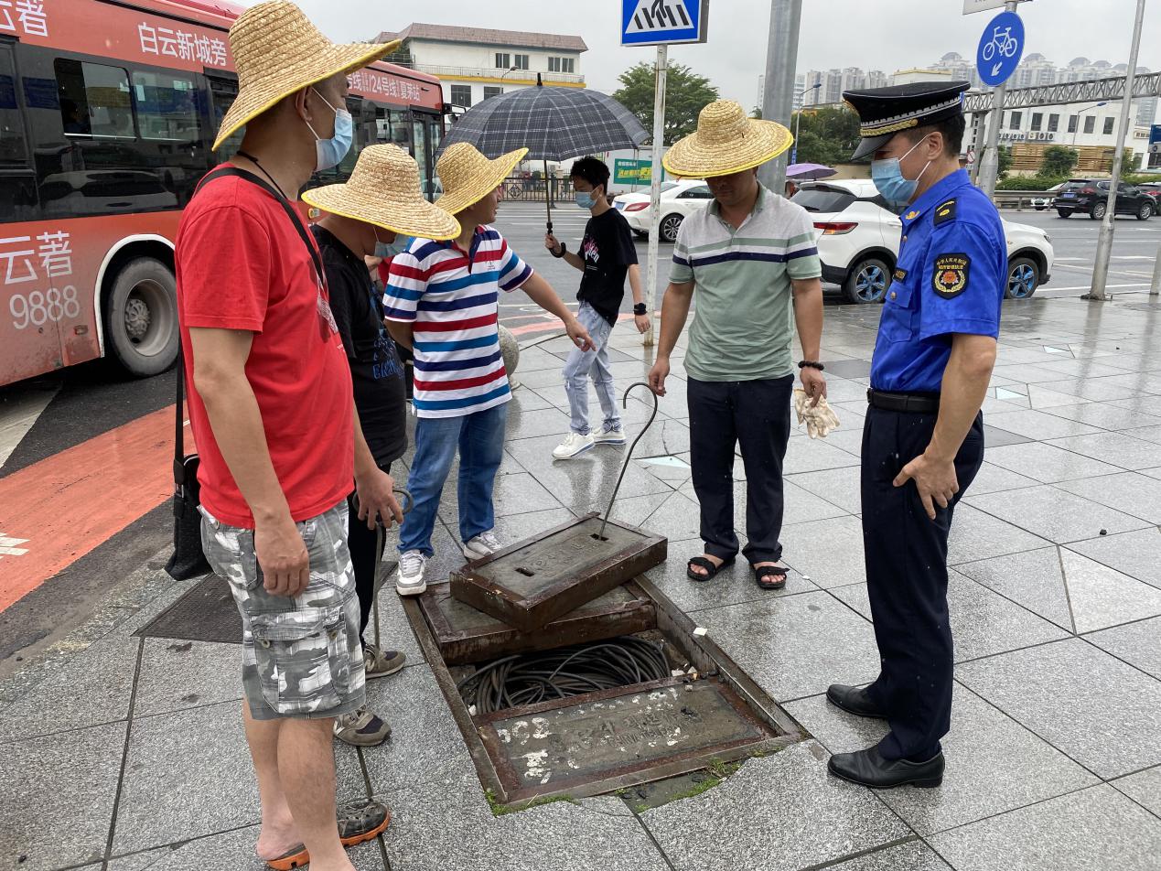 6月13日,白云区城管执法队员巡查发现位于白云大道柯子岭公交站附近一雨水排水井的井盖缺失,严重威胁汛期行人安全。经核查,该井盖权属单位为广州排水公司。为避免安全事故发生,工作人员立即拉好现场警戒线,对其周边进行围栏,拍照取证转权属部门处理完毕。