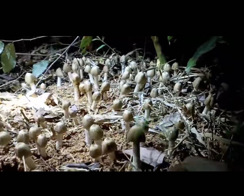 一从化市民拍下了夜采荔枝菌的视频。(截图)