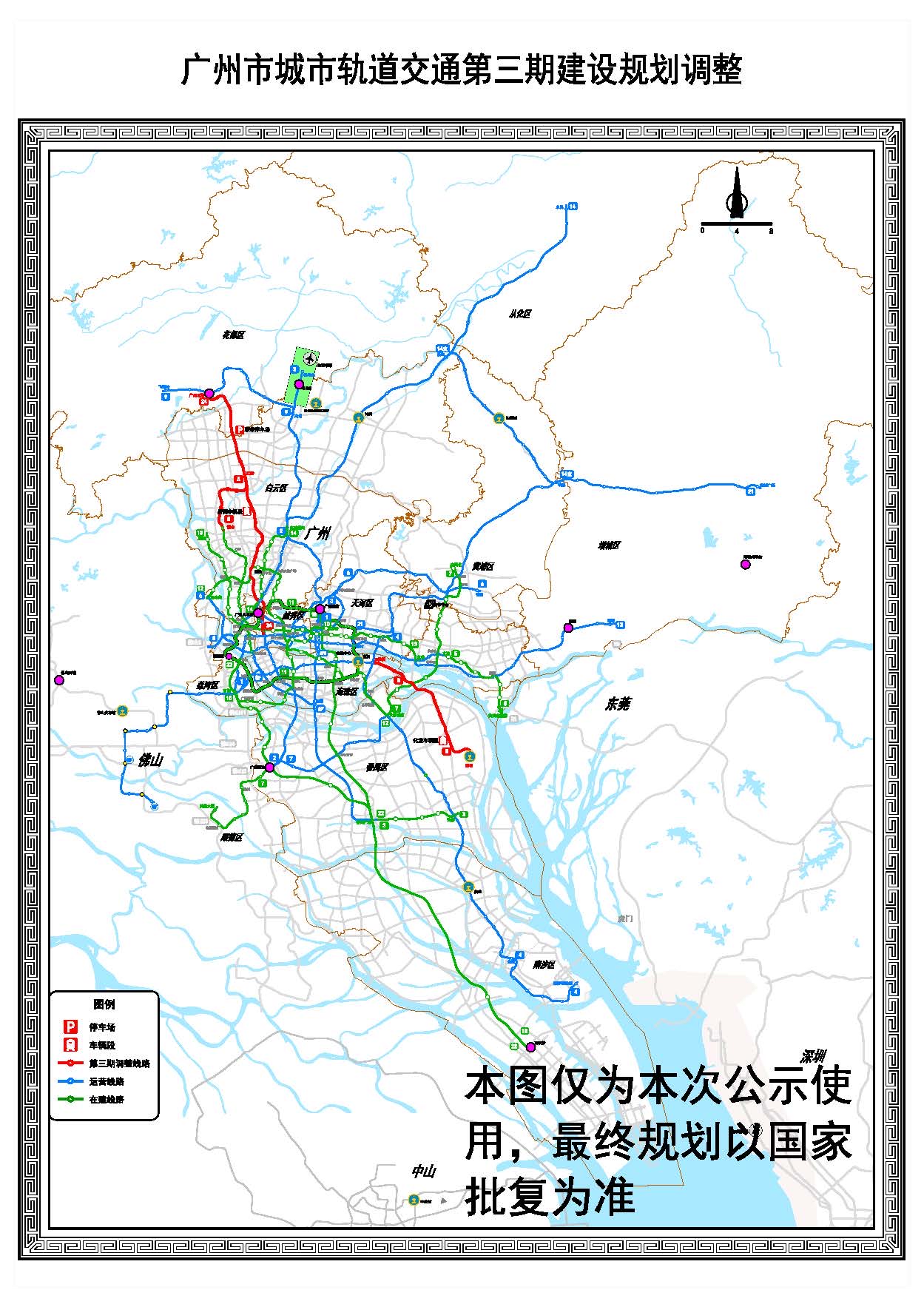 记者今天(16日)获悉,广州地铁第三期建设规划调整(简称建设规划调整)已上报国家发改委,省市将共同争取国家批复。据此前公示,建设规划调整包括3条(段)新线:8号线北延段(滘心-江府)、8号线东延段(万胜围-莲花)、原8号线北延花都段拆解而来的24号线(广州北站-纪念堂)。