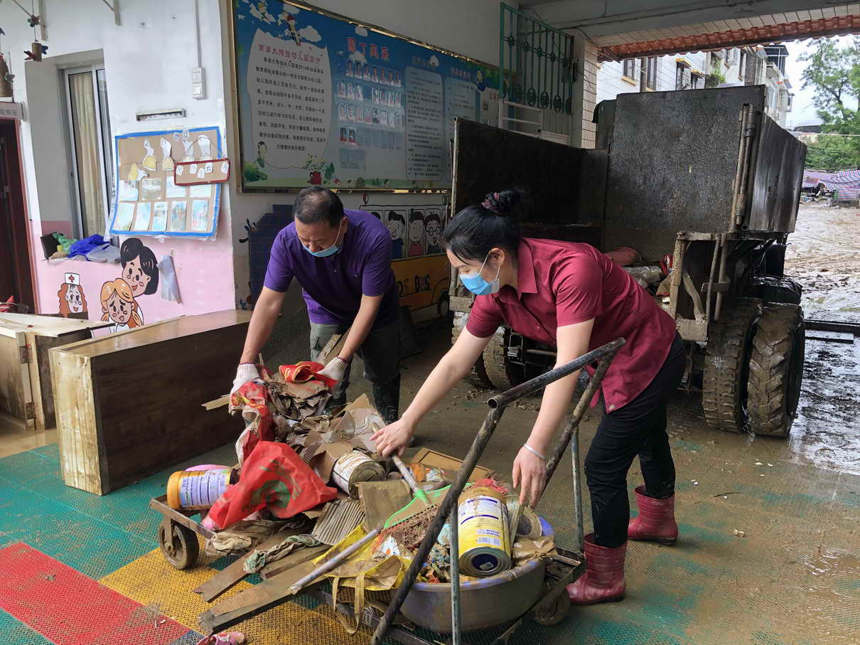 室内清淤后,学校将组织人力物力清运洪涝垃圾、清洗室外场地、开展全面消杀,并对损坏的设施设备进行补给,以最快速度完成学生安全复课前的准备工作。