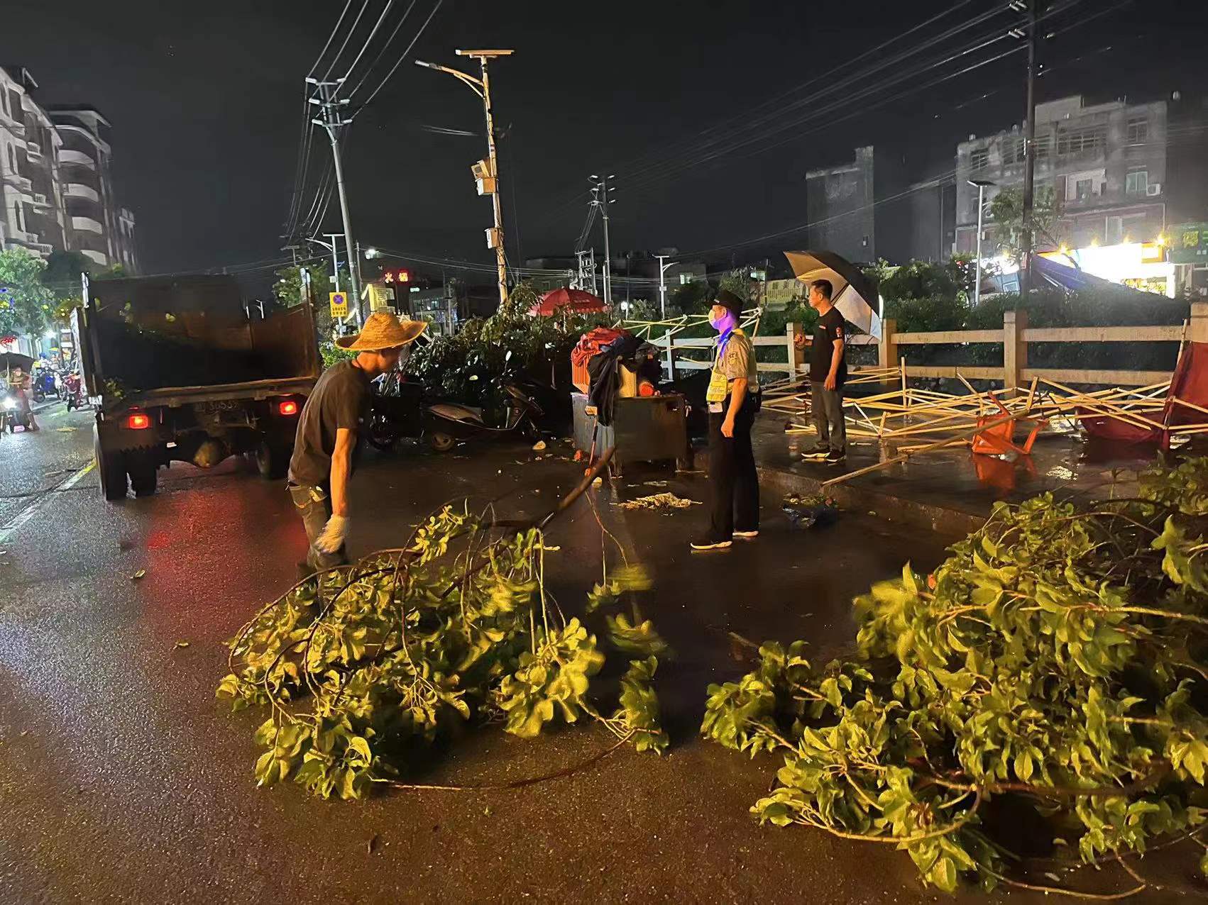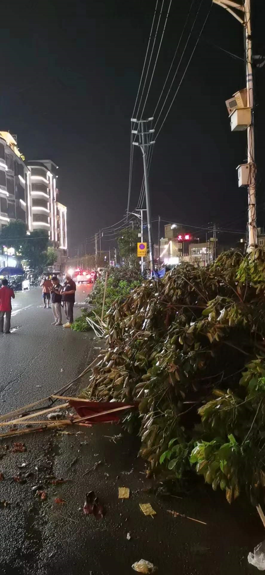 在太平镇受灾现场,出现部分区域停电,临时棚架倒塌,绿化树损毁堵塞交通等情况,主要涉及太平开发区、太平村、太平镇沿江西路等地段,暂无发现人员伤亡。