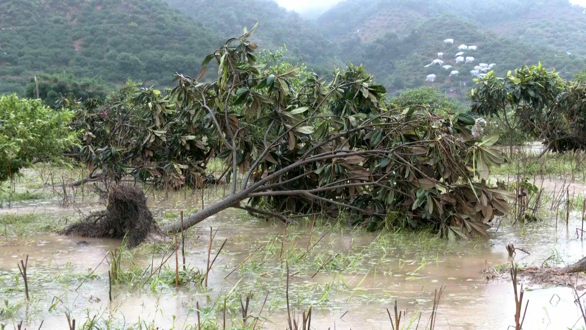 采访时,天空仍然下着雨,村道两旁的农田里,积水还未完全退去,被洪水连根拔起的枇杷树倒在积水里,花生苗、豆苗等也是倒伏状。目前,龙仙镇正组织群众清淤畅通沟渠,并对农作物具体受灾情况进行统计。
