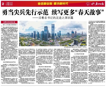 在以习近平同志为核心的党中央坚强领导下,刚过“不惑之年”的深圳,正以“闯”的精神、“创”的劲头、“干”的作风,在新时代新征程的赛道上敢为人先、奋勇争先,跑出这一程的“加速度”、跑好这一棒的高质量,在中国特色社会主义这张绚丽画卷上演绎出更加精彩的“春天故事”。