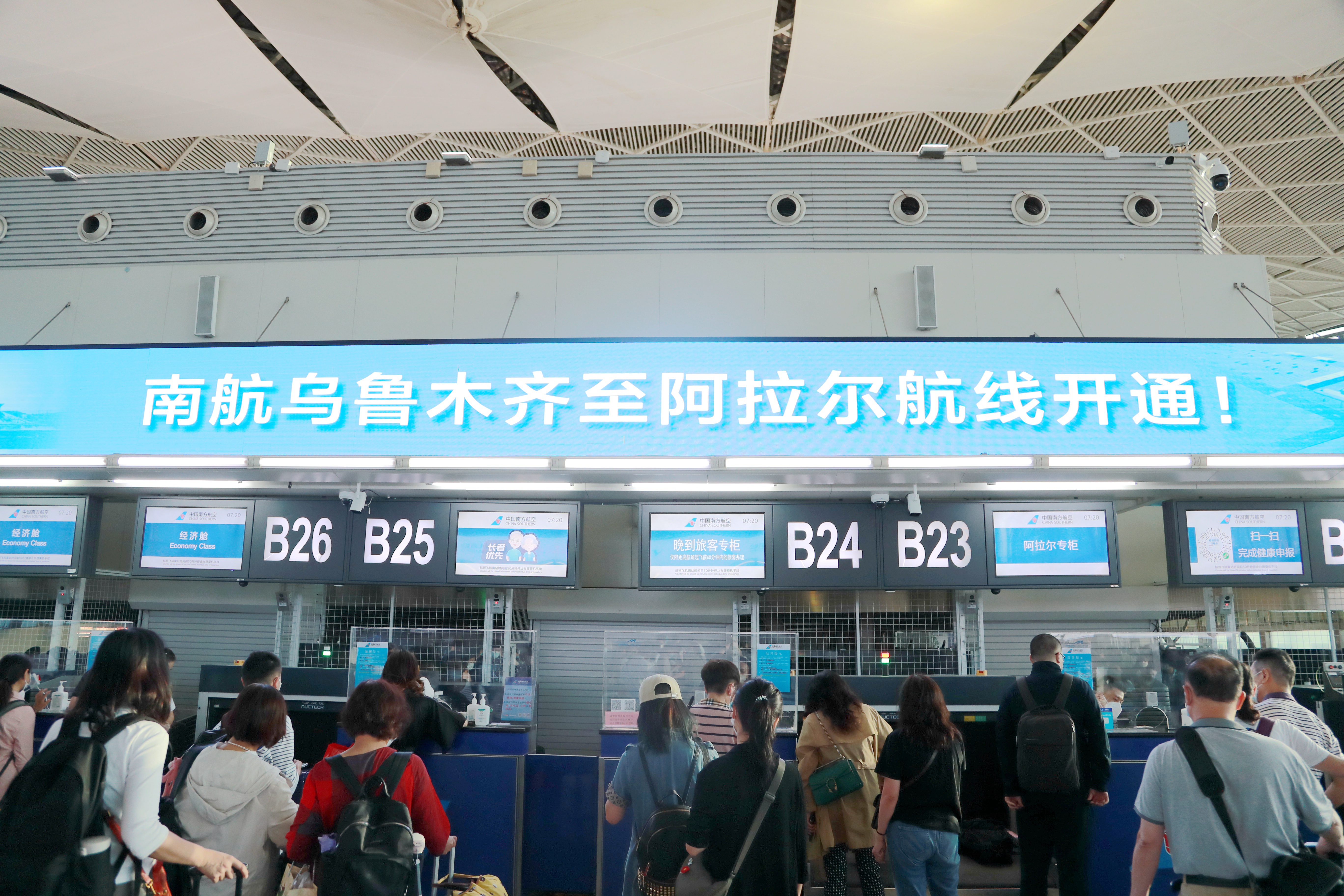 此次南航新开的乌鲁木齐-阿拉尔往返航线的航班号为CZ5565/6,班期为每日一班。后续计划去程为每日08:00由乌市起飞,09:40到达阿拉尔;回程为10:25由阿拉尔起飞,11:55抵达乌市。阿拉尔的旅客可通过该航线经由乌鲁木齐中转,并选乘南航航班实现当日抵达北京、广州、成都、西安、郑州、武汉、深圳、重庆等热门城市。据南航新疆分公司市场销售部航班规划员李琳介绍:“通航前,乌鲁木齐距离阿拉尔近一千公里,若自行驾车前往需要大约15个小时,在南航开通乌鲁木齐-阿拉尔往返航线后,仅1小时40分钟就能到达。”