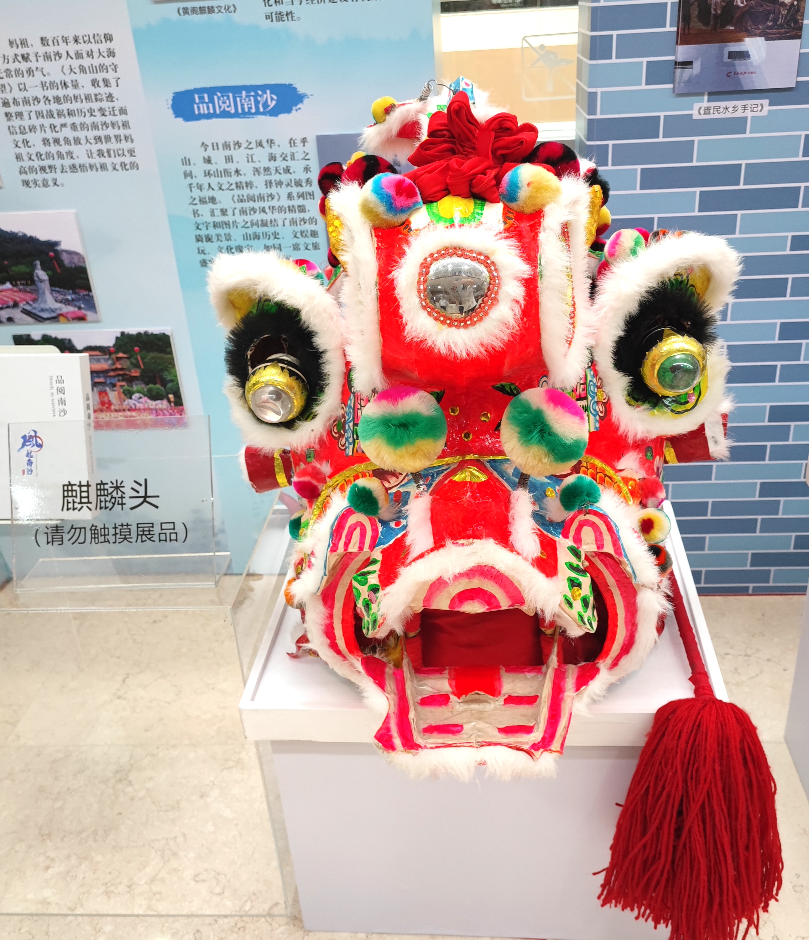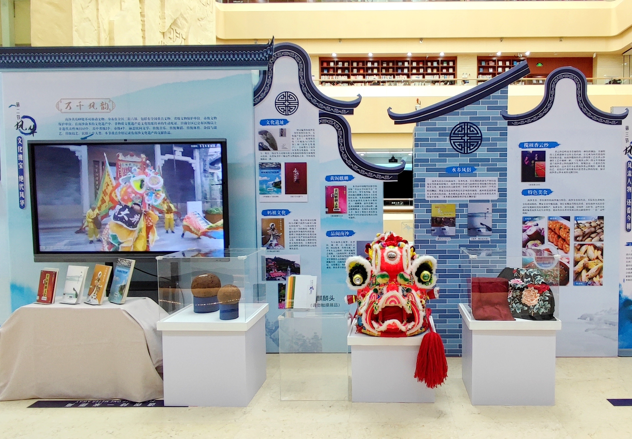 此外,本次展览特别展出了由南沙区炮台管理所保存基本完整的三枚清代铁质圆形实心炮弹,这是本次展览中唯一的历史文物。同时,馆方还采用“图文+视频+实物”蒙太奇模式来展示黄阁麒麟舞、东涌水乡婚礼、香云纱与疍家美食等南沙区重要的非物质文化遗产,让读者能够进一步感受了解南沙区的风土人情。