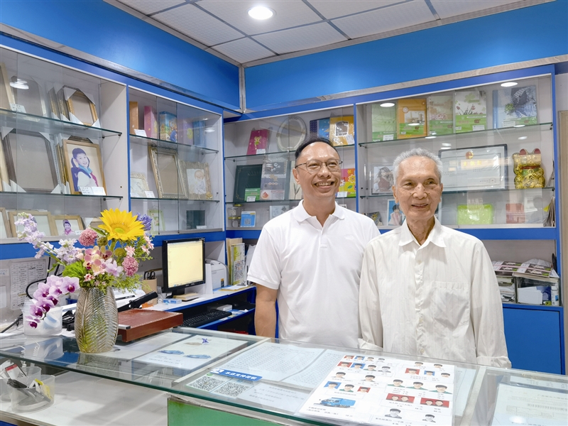 虽然年届八旬,但黎焯勋茶余饭后,依然会经常回到店里看看。从小就跟着父亲学照相的他,读完小学后就开始在店里帮忙,13岁正式入行,从照相到冲洗、晾干、修底片、漂晒、洗水、晒相到最后裁相,每个程序他认真学习,用心揣摩。