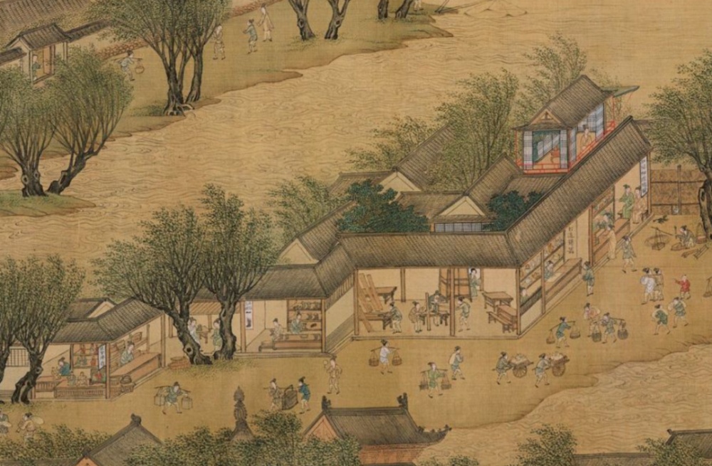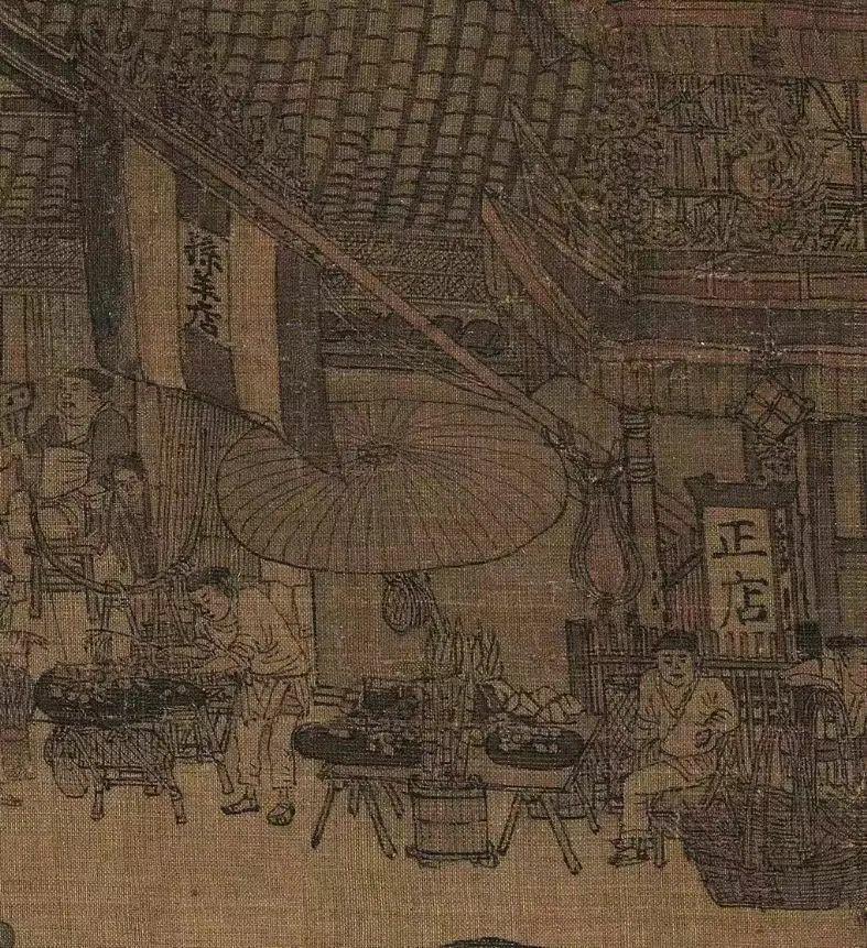 《清明上河图》里以5米长度还原的北宋东京城,一百余栋楼宇中,竟有四十五家都是经营餐饮的店铺,几近半数。