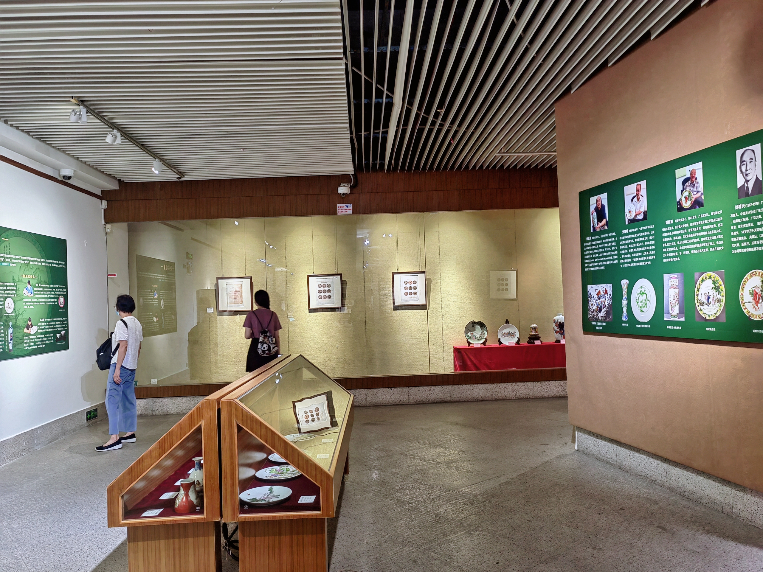 展览展示了部分高剑父、刘群兴与广彩的历史资料及广彩画稿,以及刘群兴三子刘致明、五子刘致祥、六子刘致远及广彩世家、百年老字号“赵兰桂堂”家族赵艺明、冯瑞华、赵咏、赵志健的广彩作品。