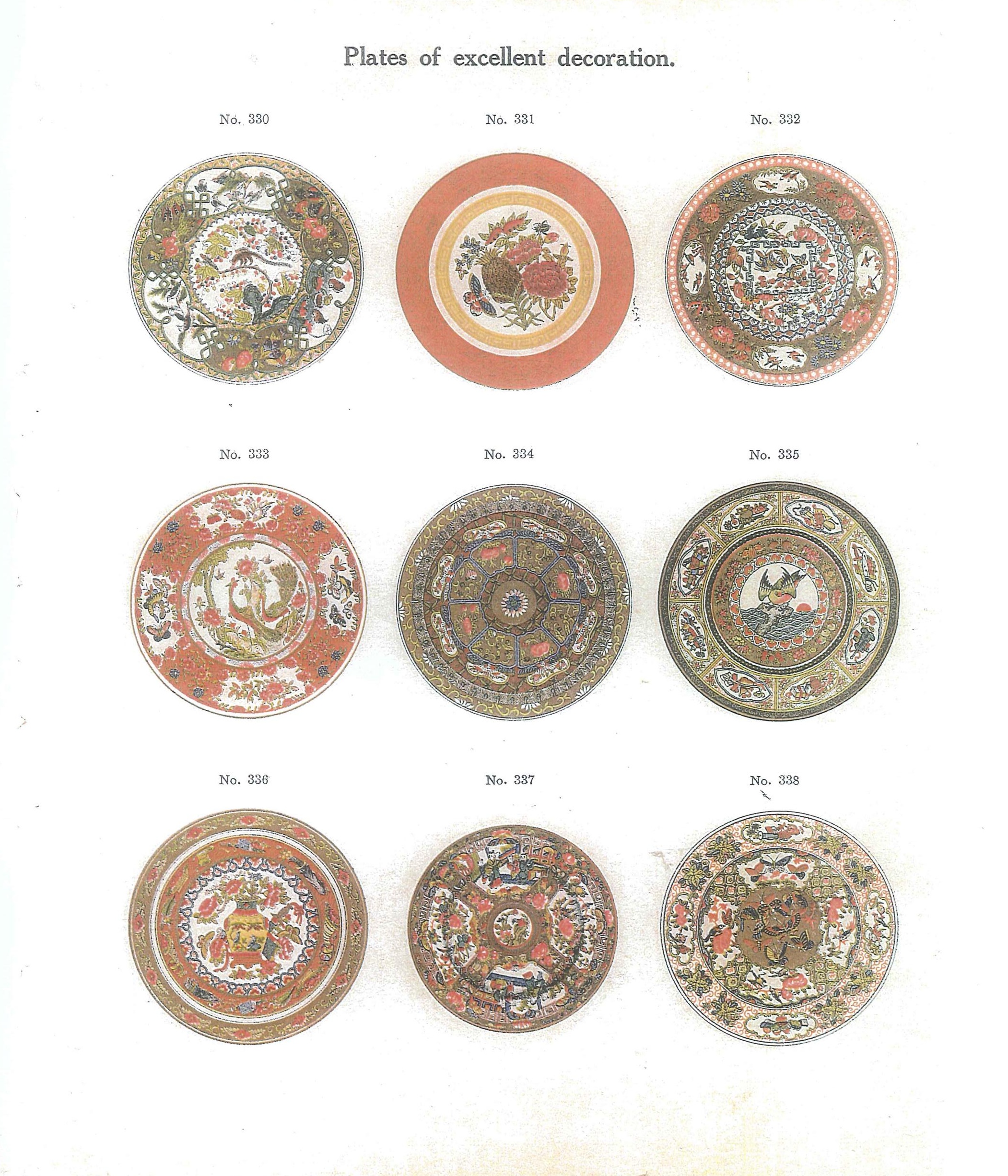 高剑父、刘群兴绘制广彩出口样品目录(部分)