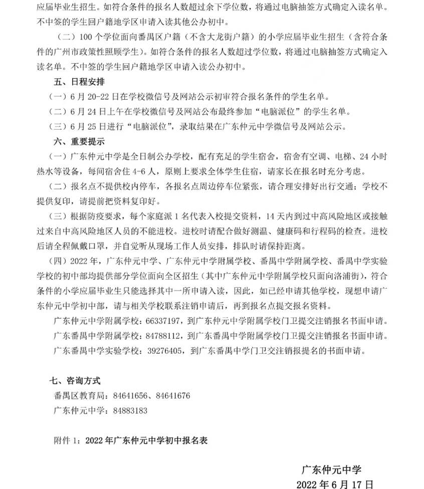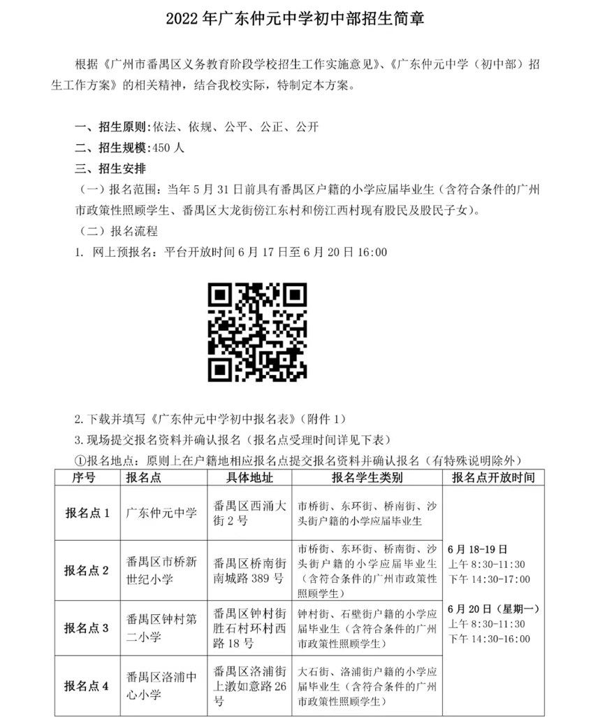 6月17日,番禺区教育局发布了广东仲元中学(初中部)招生方案及招生政策解读。