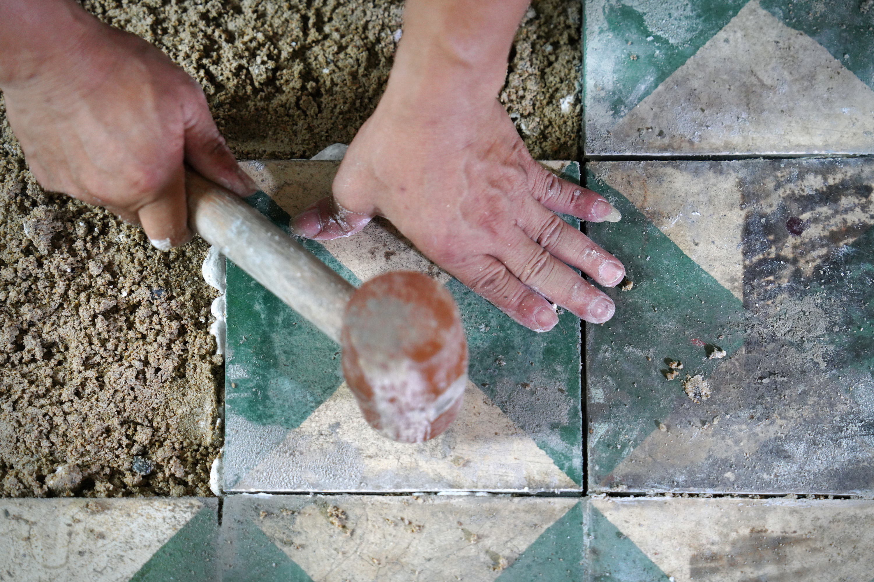 传统的砖都是从砖窑烧制出来的,但花阶砖是通过图样模具手工压制而成。匠人将白水泥混合天然色料,导入模具的不同格子中,再通过极高的压力使彩色水泥密实凝结,花阶砖就此诞生。特殊的制作工艺让花阶砖的硬度高又耐磨,保养得当,越踩就越光滑。