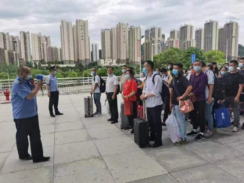 为有序做好旅客转运工作,长沙南站迅速成立专门工作组,组织辖内衡阳东、郴州西等站根据实际情况细化转运方案。针对转运人数多、到站也不尽相同的复杂情况,现场紧急增派了30余名工作人员,并开辟专门的进站通道,确保能将所有转运旅客平安有序地送至目的地。