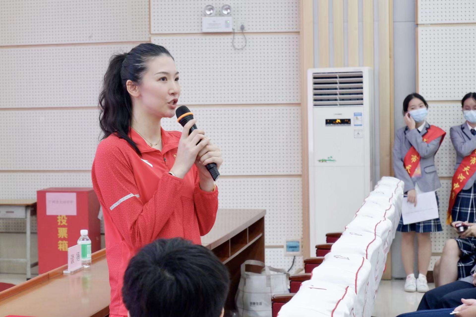 天河中学一位同学曾在小学至初中阶段参与游泳训练,但一次省运会上,他因为犯规而错失奖牌,“我当时就感觉前途一片迷茫,觉得这次比赛是失败的,这之后,又发现自己的身体机能一次不如一次。”初二之后,这位同学就渐渐放下了游泳项目。他的提问也与运动员最常打交道的失误与失利有关——“怎样看待失败这个事情,又如何从失败中走出来?”