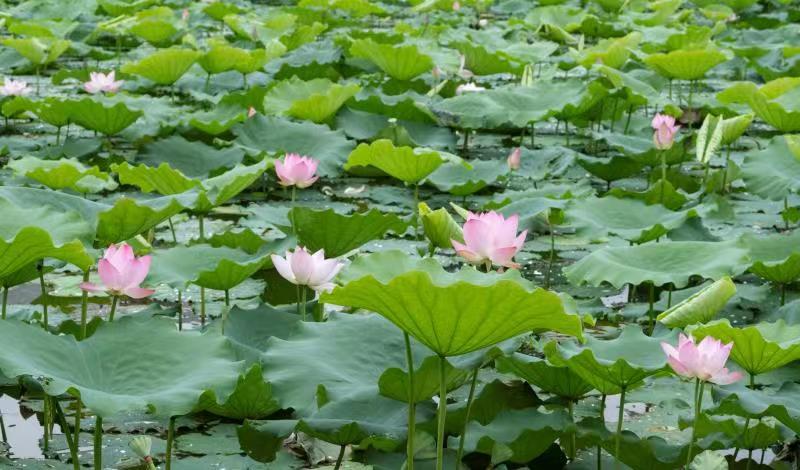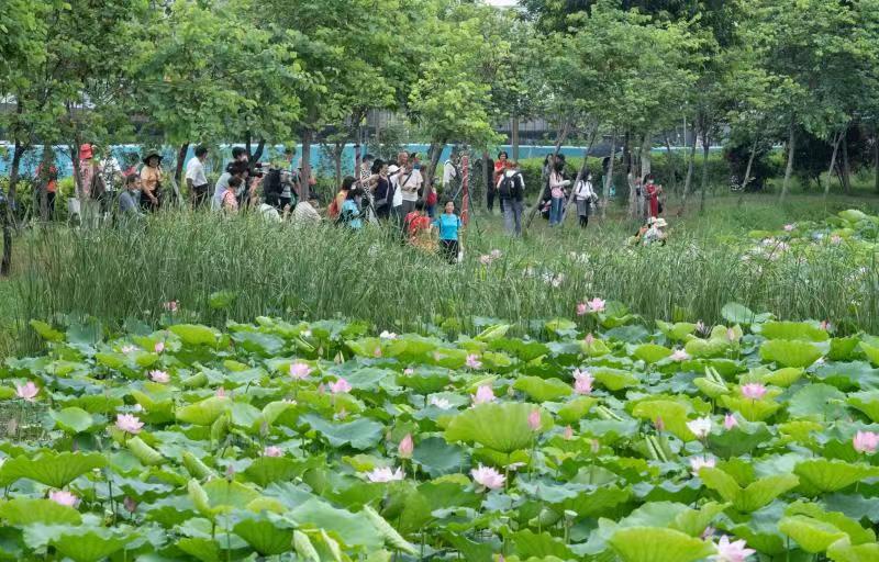 近日一个下过雨的上午,记者来到位于白云区松洲街的螺涌公园,放眼望去,“翠盖佳人临水立,檀粉不匀香汗湿”,美不胜收。
