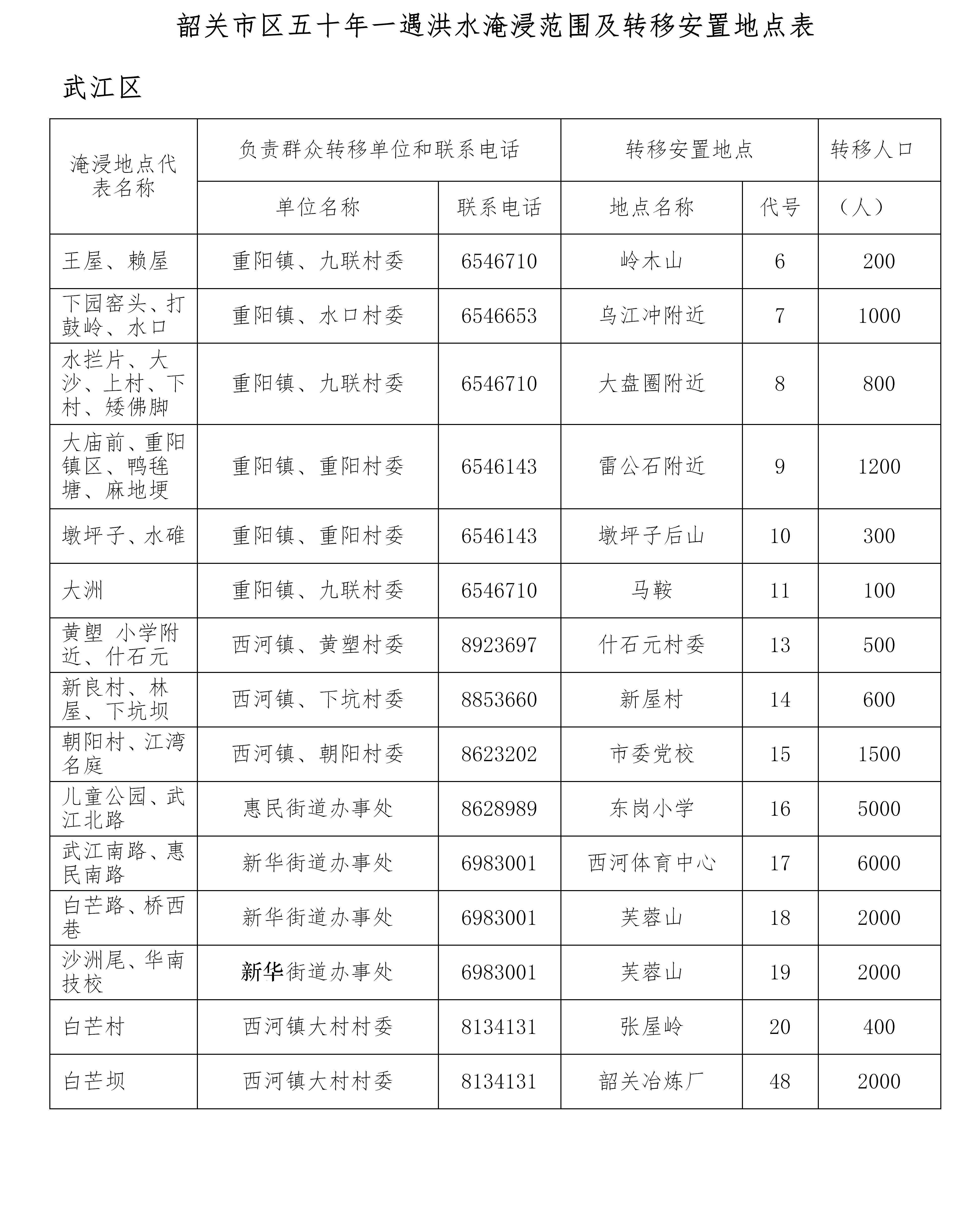 ※ 五里亭大桥至韶关教育学院范围的居民,沿惠民北路向市委党校撤离。