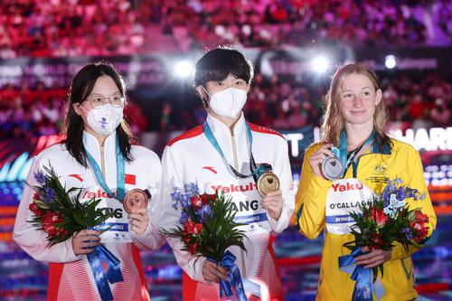 北京时间6月22日凌晨,2022布达佩斯世界游泳锦标赛女子200米自由泳决赛,中国队后来居上,两位奥运冠军登上领奖台。