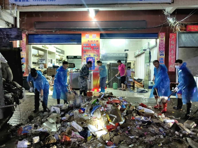 在受洪水影响最为严重的司前镇社区,6月21日,司前镇社区“大党委”协调韶关市国有河口林场等各方面力量,协助前期已安全转移安置的居民开展灾后重建。每到一户居民家中,“大党委”工作人员帮助居民清理房间内的淤泥和垃圾,尽最大的力量帮助居民早日重回家园。