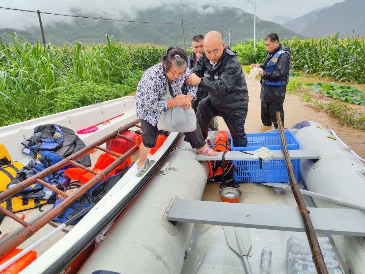 救援组当天参与危险区域的封控、救灾物资的搬运、受困群众的转移。下午,在转移沙寮村受困老人时,因老人身体不便,尝试了许多次都无法登上救生艇。