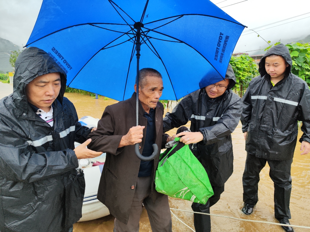 工作队队员转移受困老人