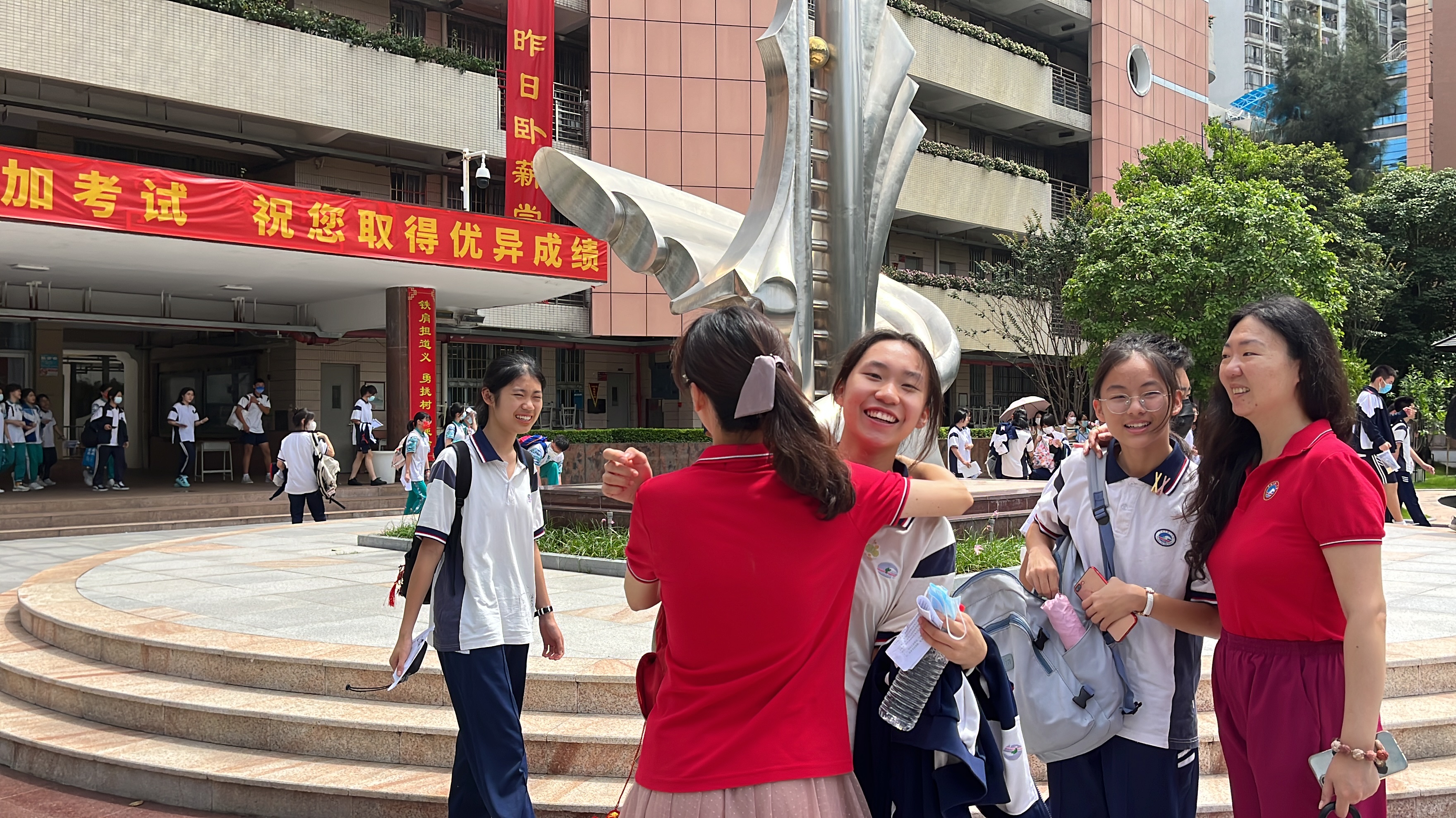 6月22日上午10:40,随着英语考试结束铃声响起,广州中考正式结束。考生们第一时间冲出考场,奔向老师,奔向家人,奔向鲜花与怀抱。被问及中考结束是什么感受?有同学答道:“我不是初中生了!”
