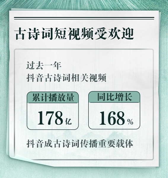 网友对传统诗词的喜爱也带动了相关书籍的销售。过去一年,抖音电商平台古诗词类书籍销量同比增长588%,《唐诗三百首》《跟着诗词去旅行》《飞花令里读诗词》等诗词类书籍销量位居前列。