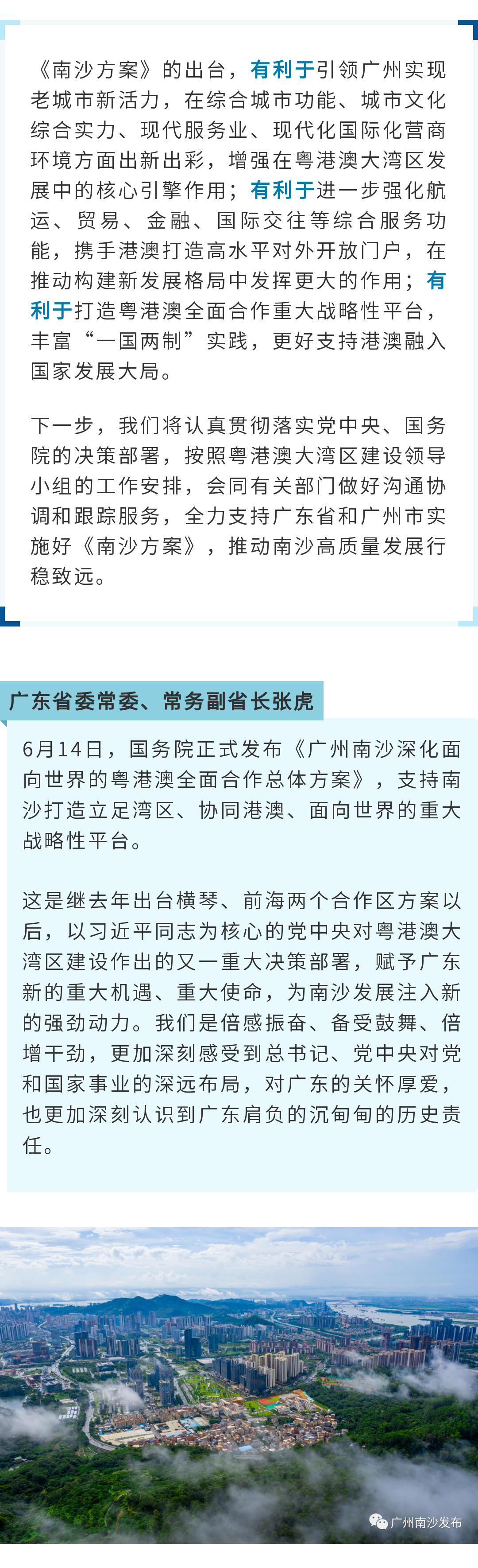 《方案》赋予南沙重大战略性平台的地位,提出了五方面的目标要求。我们将全面加强党的领导,胸怀“国之大者”,把握时间窗口,抢抓历史机遇,惟新、惟实、惟精,不负时代使命。