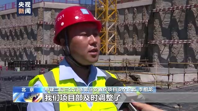 在北京张郭庄安置房建设工地,施工部门严格遵守国家高温作业规定,合理调整关于夏季高温作业劳动和休息时间,将施工时间进行了调整。