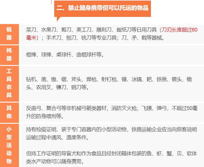 上海铁路局介绍,2022年7月1日起,按照国家铁路局和公安部的新规,将施行最新乘坐火车携带物品规定。看看有哪些不一样?