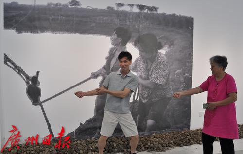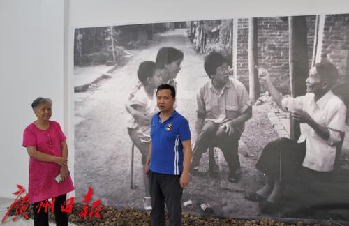 廖陵儿80年代带社会学家来调研,她当年抱着的儿子40多岁了,现在站在自己的照片前面一起合影