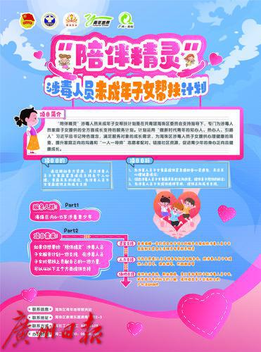 近日,海珠区2022年“陪伴精灵”涉毒人员子女帮扶计划(简称“陪伴精灵”计划)在海珠区保利发展广场正式启动。共青团海珠区委员会、海珠区禁毒委员会办公室、海珠区司法局、广东省慈泉公益基金会等有关单位代表出席,来自爱心企业和高校的项目志愿者参与了本次活动。据悉,“陪伴精灵”计划由共青团海珠区委员会、海珠区禁毒委员会办公室、广东省慈泉公益基金会主办,海珠区“青年地带”预防青少年违法犯罪项目、广州市启创社会工作服务中心承办,通过链接社会各界爱心资源,为海珠区涉毒人员子女提供筛查、帮扶、陪伴服务。该项目自2019年启动以来,共服务涉毒人员子女及其家庭2000人次,服务时长达3500个小时,2021年获评海珠区十大精品公益项目。