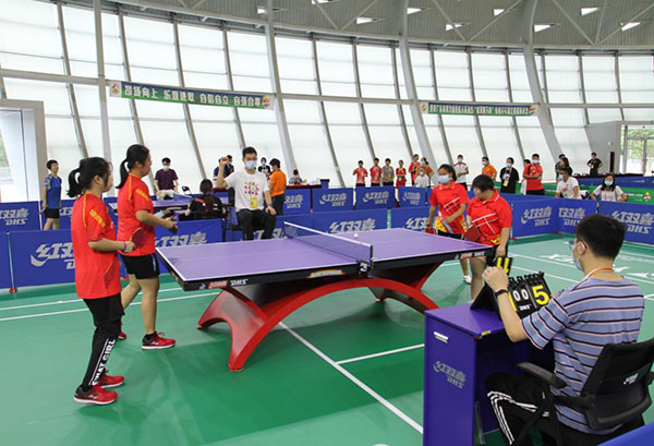 6月27日,在清远体育中心举行的广东省第九届残疾人运动会暨特奥会特奥乒乓球女子双打比赛中,广州市代表团收获特奥乒乓球金牌,这也是本届省残运会特奥项目的首枚金牌。据介绍,由王韵宁、麦鸷鸾组成的广州队以大比分两局连胜的优异成绩,分别战胜湛江队和深圳队。