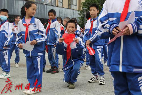 瓮安县朵云学校(广州海珠学校)学生主动展示自己的微心