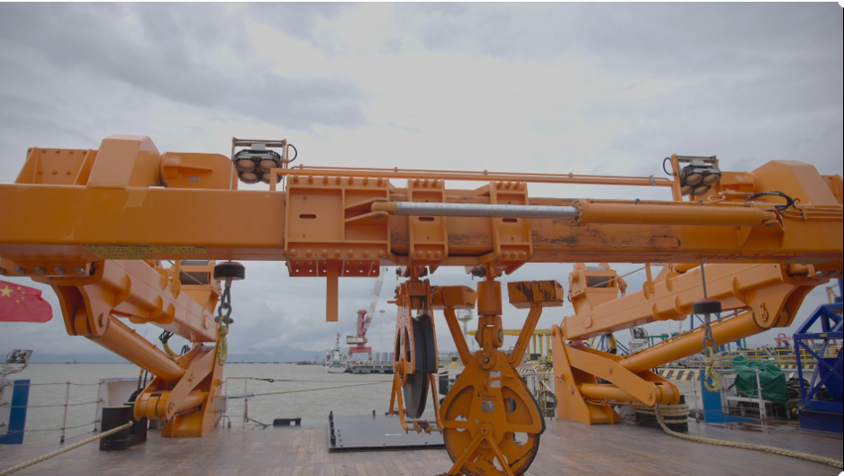 据中山大学海洋工程与技术学院副院长、极地研究中心副主任谢鹏介绍,折臂吊机在不使用时可以收缩,达到节约空间的作用。“其中一个吊机可以起重6.2吨的设备,臂展可以达到20米,越大的臂展意味着更大的操控半径。”他说。