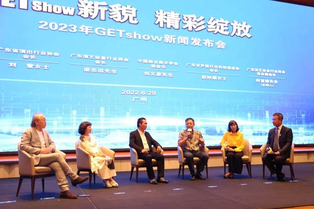 发布会现场还举行“圆桌对话”。“圆桌对话”由广东演艺设备行业商会常务副会长何首锋主持,中国舞台美术学会副会长刘文豪、广东省演出行业协会会长刘莹、广东省舞台美术研究会会长梁溪清、广东省声像灯光科技促进会会长彭妙颜、广东演艺设备行业商会会长梁志远四位“大咖”介绍行业相关组织在2023年GETshow的新合作、新亮点。